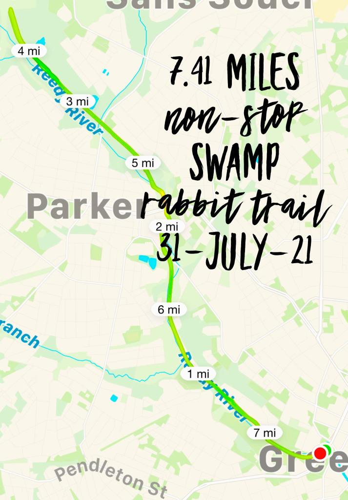 I managed to continue with 4-5 days of Burn Bootcamp Five Forks and have been doing my weekday runs right after camp in my neighborhood. However, for Saturdays, I decided to drive downtown and do the long runs on the Swamp Rabbit Trail where the actual race will take place to get use to it. The official route for this year has yet to be posted, but I know that most of it will be on this trail. I arrived there Saturday at 8 am, later than my normal 6:30 am run time and the heat was already brutal. I was actually pleased to see so many people there already running, bicycling, and walking. I LOVED feeding off that energy! The goal was 7 miles this past Saturday and I went a little over and walked 1/2 mile to cool off. I never felt like I had to stop so I will take that as a win! The pace was a little slower, but from here on forward, that will be referred to as a “sexy pace,” as my fellow runners call it. More to come on that in an upcoming post.